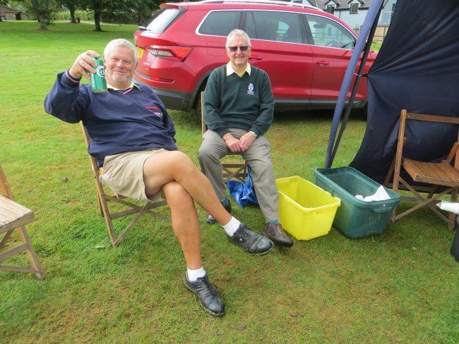 I spent most of my time meeting everyone as they passed the 10th tee after playing the 2nd hole and they all seemed in excellent spirits. when they got back to the 10th tee the refreshments were well received, especially the pasties and Eccles cakes. I was delighted that the Libbaton Club President, Ben James, offered to act as starter for the day and saw everyone off. He was kept well supplied with beer, whisky, pasties and Eccles cakes. A big thank you to him for doing this.