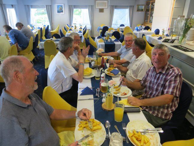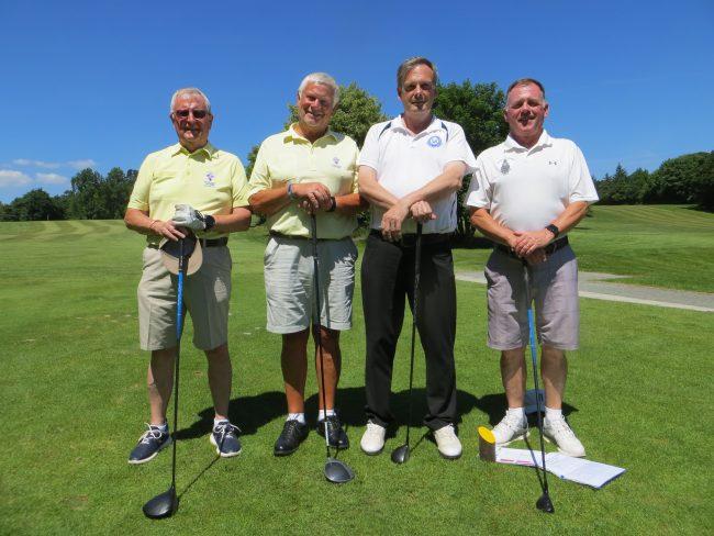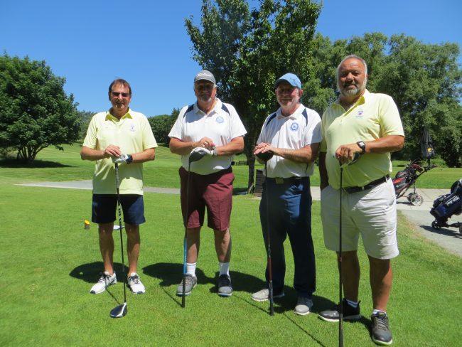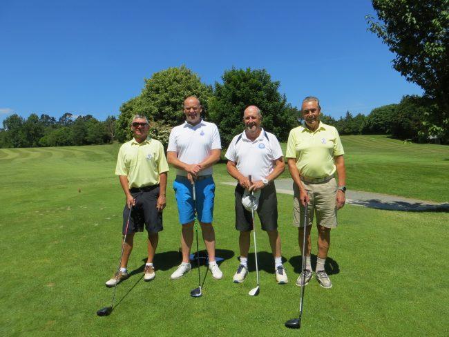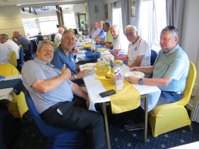 After a generous lunch that consisted of excellent sandwiches and mountains of chips battle commenced on the golf course and Captain Graham showed his sense of humour by pitting Clive Bennett and Vice-Captain Phil against the Head Professional, Mike from RND (playing off scratch) and his playing partner Julian from East Devon. Needless to say Mike hit his drives out of sight at warp speed but the fighting spirit of the Devon boys won their match 3 and 2. The overall score was that the match was halved with Devon Golf Captains retaining the silverware.