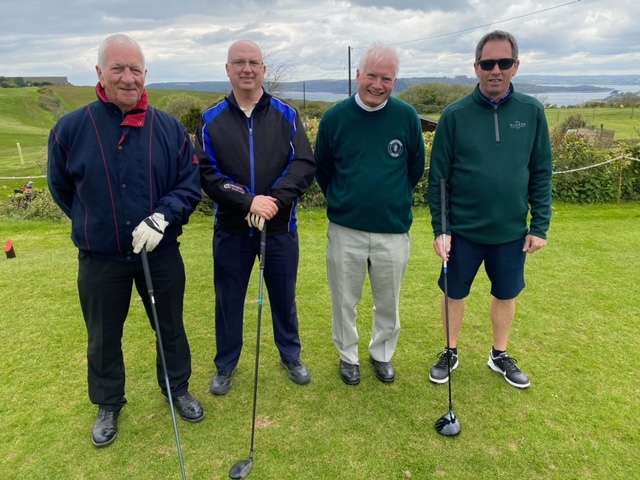The teams arrived at Staddon Heights Golf Club to be met with the winds from the Baltic. Although Spring had definitely not arrived in Devon, it was great to play with the threat of rain disappearing over the horizon.