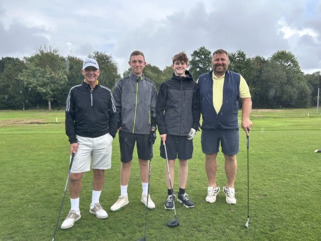 Bacon baps & chips were demolished and then yours truly and Stover’s Vice Captain Neil Goddard (8) faced the formidable pairing of Captain Freddie Elgin (+2.6) & Joe Aldous (+0.1) on the 1st tee.