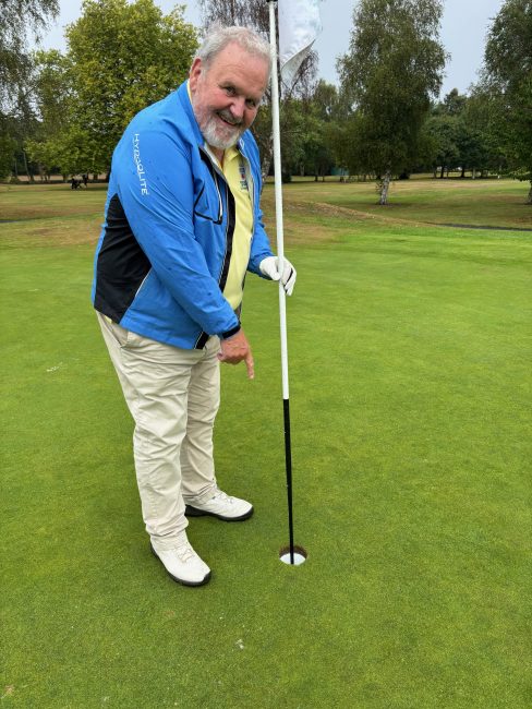 We just got our noses in front until the old 4th hole which is being played as a par 3 replacing the 7th hole which is out of play. Yours truly had a hole-in-one for a net 0!!!